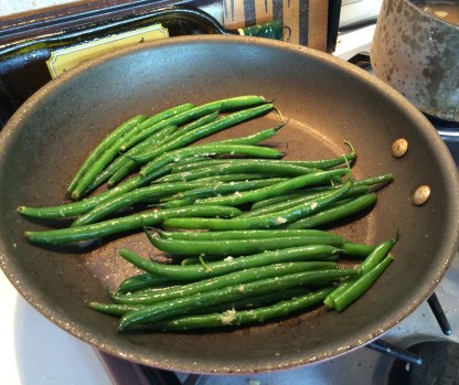 Green beans cooking in garlicky goodness